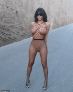 On Tuesday, the 30-year-old model took to Instagram to share a series of bold photos, where she appeared wearing only sheer pantyhose and a completely see-through fishnet top while posing in public.