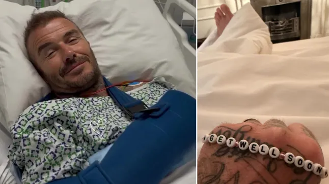 The former Manchester United and Real Madrid midfielder, 50, was seen wearing a medical gown and a blue arm sling in the photograph, lying in a hospital bed. Victoria, 51, captioned the post: “Get well soon Daddy,” alongside a second image showing her husband wearing a friendship bracelet that spelled out the same words in beads a nod to Taylor Swift’s popular accessory trend.