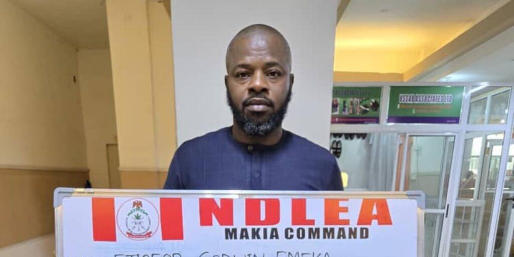 The National Drug Law Enforcement Agency (NDLEA) has arrested a boutique owner, Godwin Emeka, at Mallam Aminu Kano International Airport, Kano, after he allegedly excreted 127 wraps of cocaine.