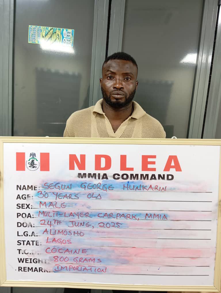 The National Drug Law Enforcement Agency (NDLEA) has arrested a former international footballer, Segun George Hunkarin, and his associate, Ntoruka Chinedu, for attempting to smuggle cocaine into Nigeria via Murtala Muhammed International Airport in Lagos.