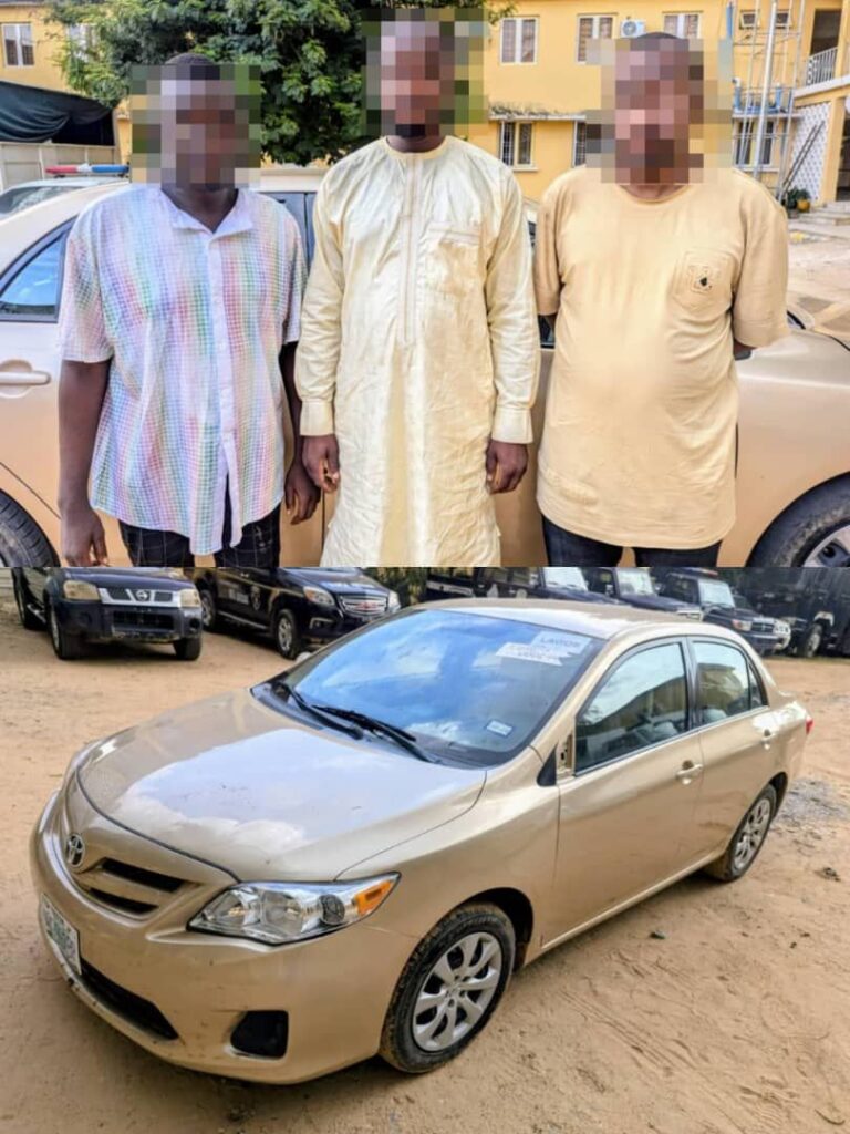“The Kano State Police Command has arrested three notorious suspects in connection with a car snatching incident. On 7th July 2025, at about 01:45 pm, a report was received from a car dealer, Abdulqadir Abdurrahman, a male resident of Gadan Kaya Quarters, Kano, about a notorious thief and car snatcher, Shamsu Yusuf, popularly known as ‘Chitta’,” the statement read.“The suspect approached their car stand, disguised as a car buyer and snatched a gold-colored Toyota Corolla 2013 model from Bashir Ridwan of Dangari Motors at Gadon Kaya Quarters, Kano, while on a test drive.“Following a coordinated tactical operation, operatives from the Command’s Special Intervention Squad (SIS) led by CSP Rabiu Gidado arrested the principal suspect and his two accomplices on 17th July 2025.“The accomplices, Bashir Ladan, a 40-year-old male from Shagari Quarters, Katsina, and Suleiman Muntari, a 41-year-old male from Tudun Matawalle, Katsina State, were arrested in Katsina State. The stolen motor vehicle, which had been sold in the Niger Republic, was recovered.“The principal suspect confessed to a series of car thefts, including the theft of a GLK Mercedes car of recent. Investigations are ongoing.“The Commissioner of Police, Kano State Command, CP Ibrahim Adamu Bakori, PhD, sfipma, mnim, mnips, commended the operatives for their professionalism and dedication to duty. While calling on car dealers to be wary of such criminal activities, he assured the public of the Command’s commitment to protecting lives and property in the State.“The Command urges everyone to continue providing useful information to aid in the fight against crime. In case of emergency or to report suspicious activities, the Kano State Police Command can be contacted through the following numbers: 08032419745, 08123821575, 09029292926.”