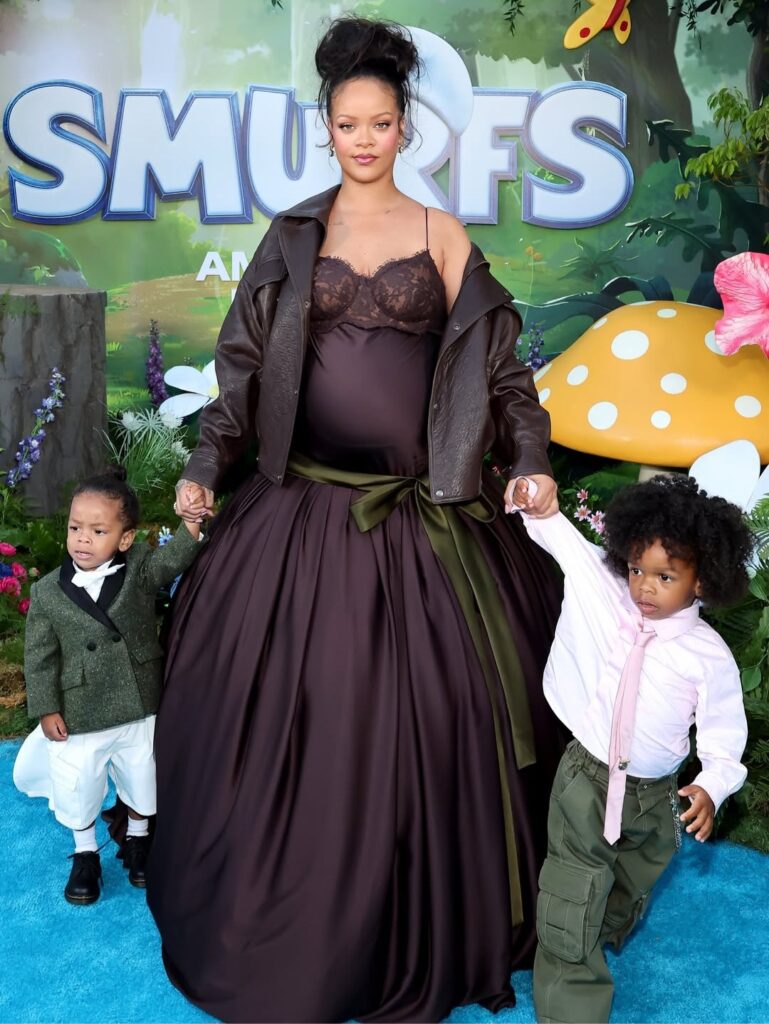 The 37-year-old, who is currently expecting her third child with partner A$AP Rocky, arrived beaming with pride as she held hands with her sons—RZA, 2, and Riot, 23 months.