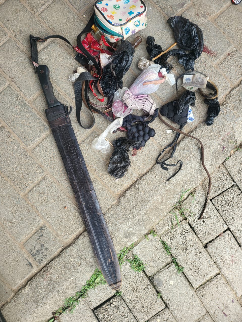 Recovered from the scene were a long-bladed knife and several fetish charms believed to be used for protection.